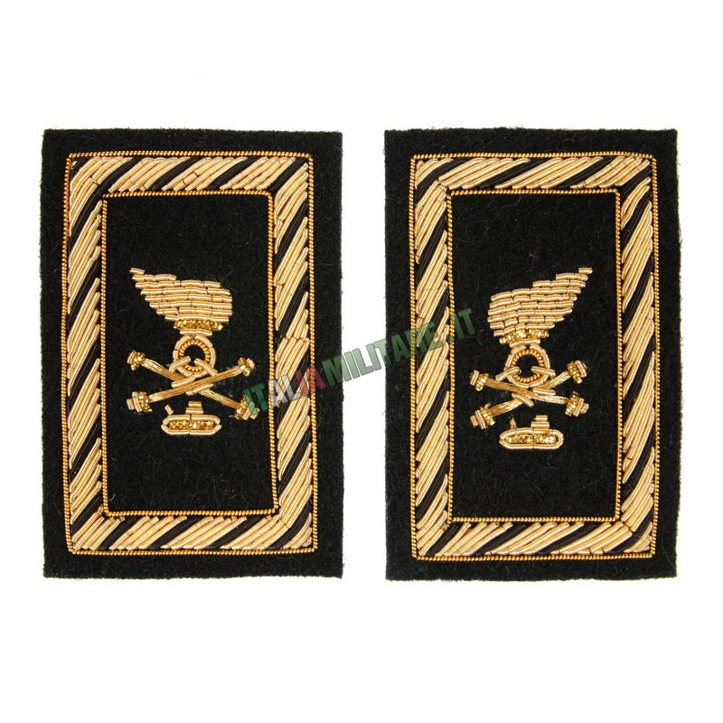 TRAVETTE ESERCITO ITALIANO - ARTIGLIERIA SEMOVENTETravette militari per la giacca dell'uniforme di gala dell'Esercito Italiano, Artiglieria Semovente. Il modello di travetta qui in vendita è commercializzato singolarmente o a coppia, a scelta in base alla necessità. TRAVETTE IN VENDITA - CATEGORIA: