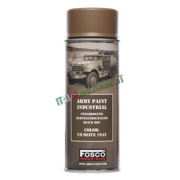 VERNICE MILITARE SPRAY VERDE AMERICANOFosco Army Paint Industrial da 0,4 litri - 400 ml. Bomboletta di vernice militare di tipo industriale in formato spray, finitura opaca, perfetta per verniciare armi, per la personalizzazione e mimetizzazione di tessuti, postazioni e mezzi militari. Pronta all'uso, questa vernice militare ha una facile presa sulla maggior parte delle superfici verniciabili, asciuga molto rapidamente ed ha in ρiυ' una ottima resistenza al calore, cosa che la rende compatibile con la verniciatura e la mimetizzazione delle armi. La sua texture opaca la rende perfetta per l'utilizzo militare in quanto non riflette la luce e previene quindi l'individuazione da riflesso. Ha una buona resistenza ai graffi. Specie quando utilizzata sulle armi o in genere su superfici metalliche, può essere rimossa con l'apposito solvente Fosco permettendo quindi la personalizzazione per gli impieghi operativi con la possibilità di ritornare allo stato originale. Essendo a base di acetone, questa vernice ha una alta capacità di aggrapparsi alle superfici ma non è idonea per l'applicazione diretta su tutti i tipi di plastica in quanto la sua aggressività può scioglierne i tipi più comuni; su queste superfici è consigliabile utilizzarla solo previa applicazione di un primo strato di fondo apposito per materiali plastici oppure dopo averne testato la compatibilità su una piccola parte non visibile. Sulle plastiche e sui tessuti la verniciatura è permanente e il solvente rimuovi vernice non deve essere utlizzato. Per migliorare il risultato della verniciatura è necessario avere una base uniforme di colore e di superficie, in modo da neutralizzare asperità e cambi di colore pre esistenti ed è disponibile per questo il primer specifico Fosco. Infine, per estendere la durata della verniciatura si utilizza la speciale vernice trasparente Fosco che protegge il lavoro di verniciatura che non risulta direttamente esposto. Dopo ogni utilizzo della bomboletta è necessario effettuare qualche spruzzo "a vuoto" con la bomboletta capovolta, in modo da far uscire solo il propellente, pulire l'ugello e liberarlo dalla vernice che altrimenti si asciugherebbe e lo otturerebbe.