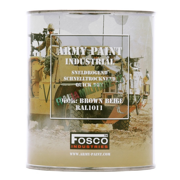 Army Paint Industrial VERNICE MILITARE Perfetta per verniciare armi, mezzi, tessuto, postazioni, ecc. CARATTERISTICHE: FACILE PRESA SU QUALUNQUE SUPERFICIE RESISTENZA FINO A 110° GRADI ASCIUGA IN POCHI MINUTI, NON LASCIA ALONI CAPACITA': 1 LITRO (diluibile per maggiore resa, consigliato trementina) COLORE: SABBIA - BROWN BEIGE - RAL 1011 MADE IN EUROPE - OLANDA Da oltre 10 anni Italia Militare si occupa della vendita online di abbigliamento militare, forniture militari e Vernice Militare da 1 Litro Beige vantando una grande esperienza e un magazzino di mille metri quadrati con oltre undicimila prodotti militari disponibili a stock. Supportiamo e riforniamo di abbigliamento militare e accessori militari le nostre forze armate, forze dell'ordine e operatori di sicurezza, anche nelle missioni all'estero. I nostri prodotti sono destinati a militari, outdoor, tempo libero, soft-air e ai collezionisti. Puoi ordinare Vernice Militare da 1 Litro Beige attraverso web, E-mail e telefono. Se hai difficoltà a trovare Vernice Militare da 1 Litro Beige utilizza il campo ricerca per filtrare i risultati. Tutti i prodotti del settore provengono dai più importanti e affidabili fornitori del settore militaria e outdoor. La soddisfazione del Cliente è importante per Italia Militare e per questo la consegna di Vernice Militare da 1 Litro Beige avviene nel più breve tempo possibile.