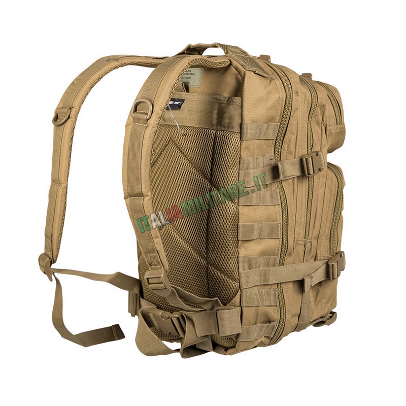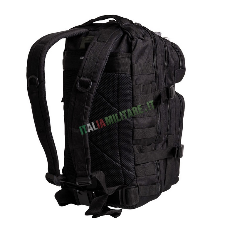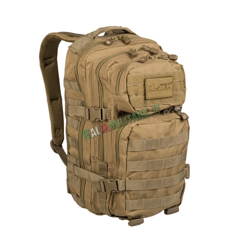 ZAINO MILITARE MODULARE 30 LTNuovo modello di zaino "Assault Small" da 30 Litri implementato con scratch frontale. Uno zaino militare tra i più venduti e apprezzati da personale militare ma anche da appassionati outdoor. Lo zaino è realizzato in poliestere ad altissima tenacità e resilienza, elevata resistenza all'abrasione, alle pieghe e al calore. Lo zaino non restringe se bagnato e riprende facilmente la forma anche dopo un eventuale lavaggio. Il poliestere in cui è realizzato lo zaino resiste bene agli agenti chimici e fisici. La presenza di attacchi modulari sul davanti rende questo zaino militare estremamente versatile e idoneo per ogni teatro di operazione o per l'outdoor.