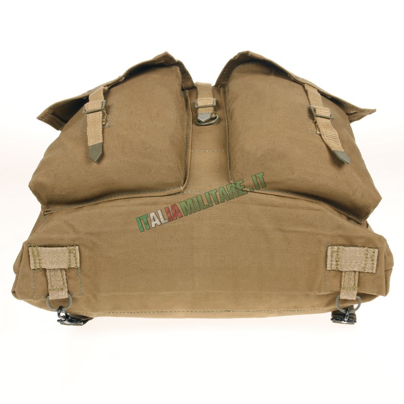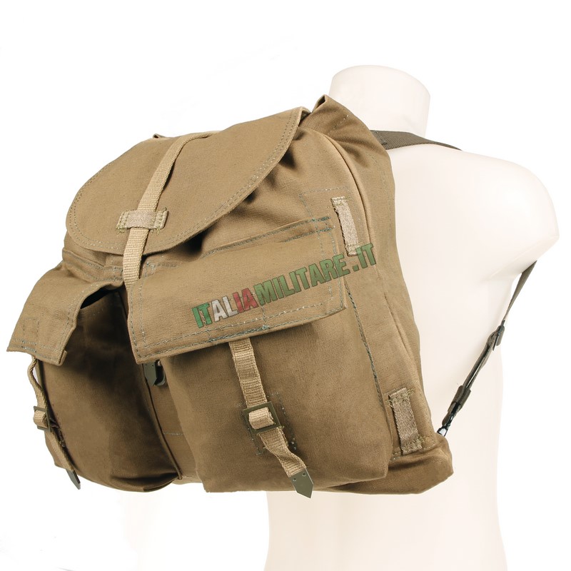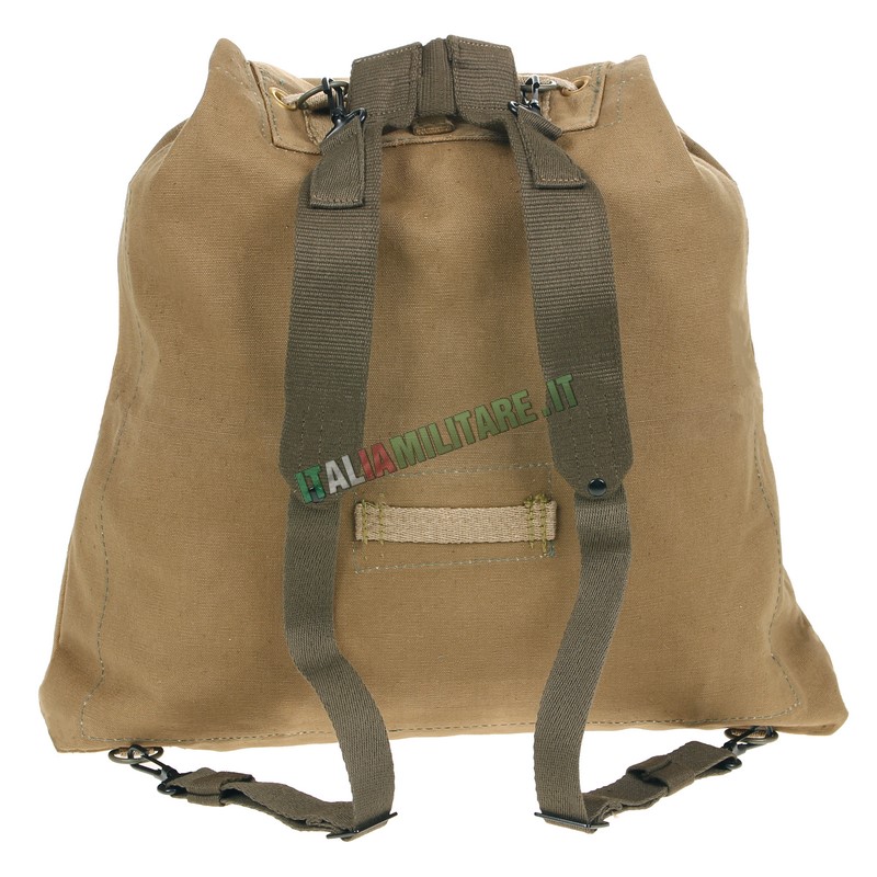 ZAINO CECO M60 – USATO ORIGINALEZaino originale ex fornitura dell'Esercito Ceco, realizzato interamente in cotone con passanti e anelli in metallo. Utilizzato negli anni '60 (da qui il nome di M60), è uno zaino molto capiente dotato di un grande vano centrale con uno scomparto all'interno, due tasche esterne frontali e spallacci rimovibili. CARATTERISTICHE: